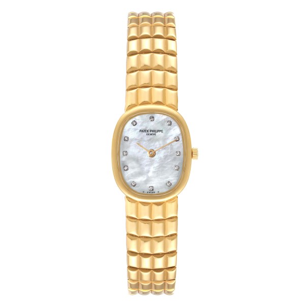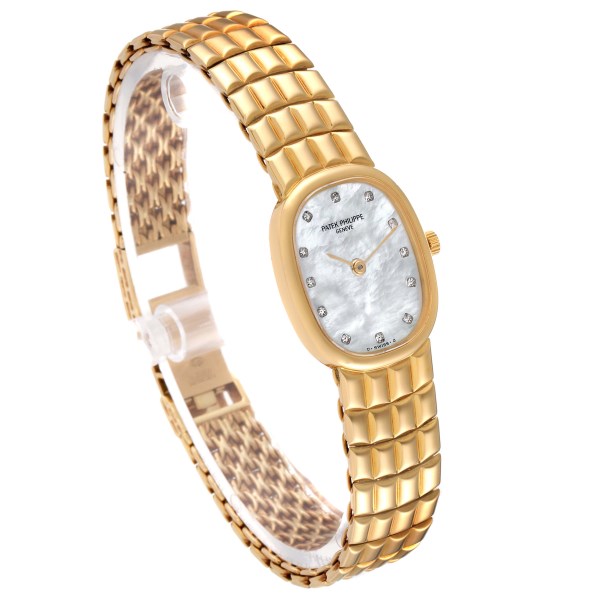 | Model Name: | Patek Philippe Golden Ellipse Yellow Gold Mother of Pearl Diamond Ladies Watch 4764 |