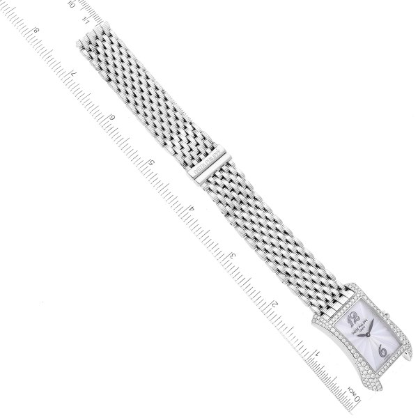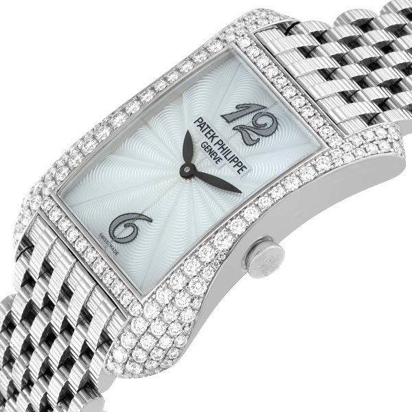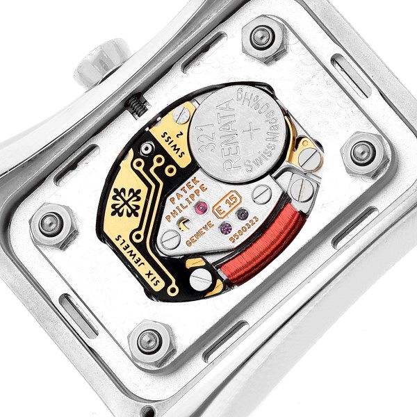 | Case: | 18k white gold asymmetrical case 39.5 x 22 mm, set with original Patek Philippe factory diamonds. |