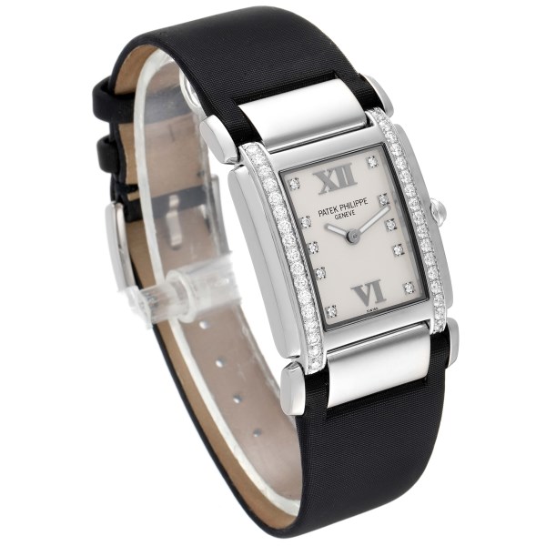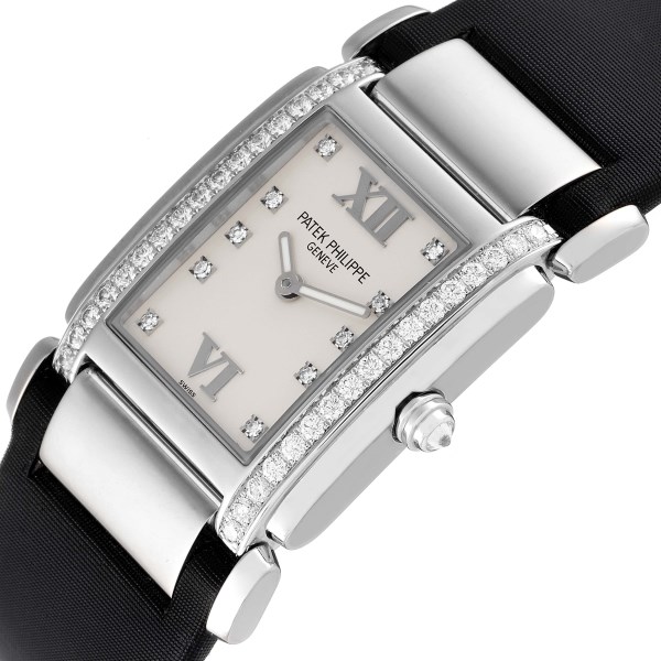 | Model Name: | Patek Philippe Twenty-4 White Gold Silver Diamond Dial Ladies Watch 4920 Papers |