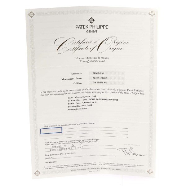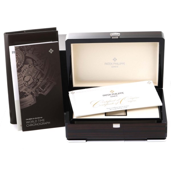 | Model Name: | Patek Philippe World Time Complications White Gold Chronograph Watch 5930 Unworn |