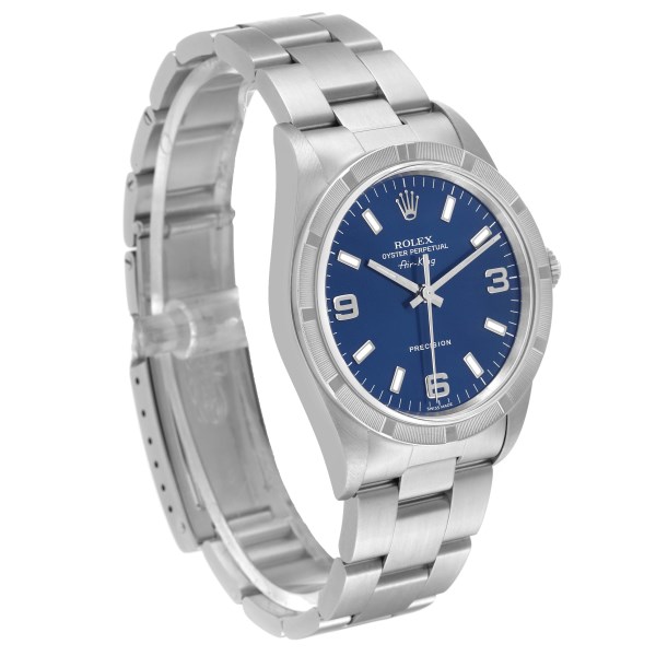 | Model Name: | Rolex Air King 34mm Blue Dial Engine Turned Bezel Steel Mens Watch 14010 |