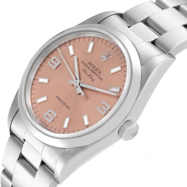 | Model Name: | Rolex Air King 34mm Salmon Dial Smooth Bezel Steel Mens Watch 14000 |