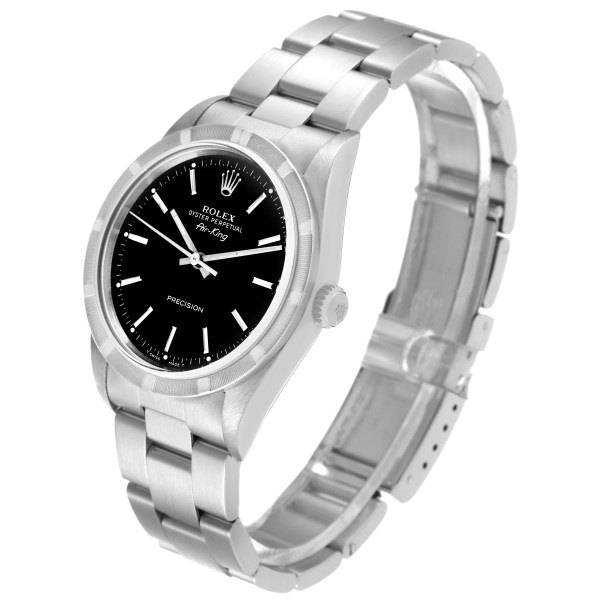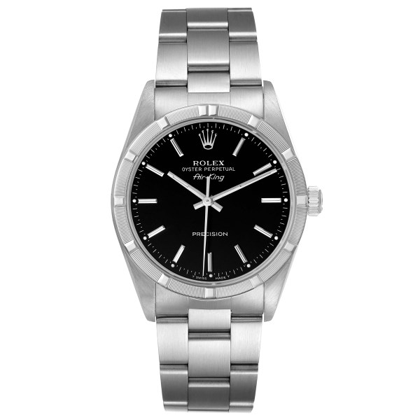| Model Name: | Rolex Air King Black Dial Steel Engine Turned Bezel Mens Watch 14010 |