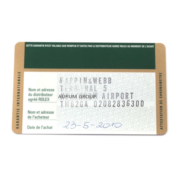 | Box & Papers: | Rolex box and card. |