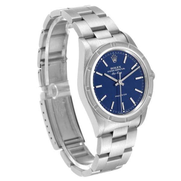 | Model Name: | Rolex Air King Blue Dial Engine Turned Bezel Steel Mens Watch 14010 |
