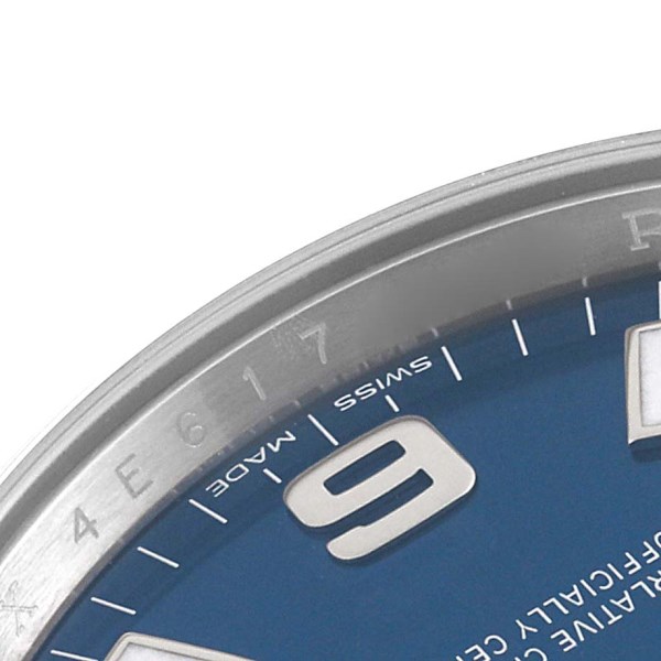 | Dial: | Blue dial with applied Arabic numerals and luminescent hour markers. |