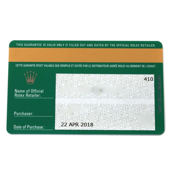 | Box & Papers: | Rolex box and card. |