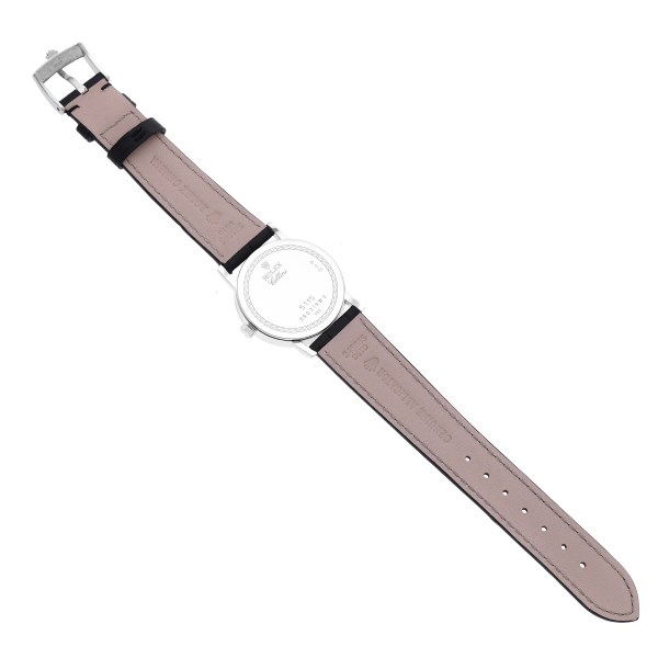| Dial: | Silver dial with baton hour markers and Roman numerals. Guilloche decoration in the center. |