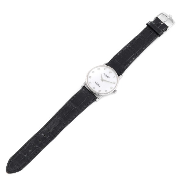 | Case: | 18K white gold slim case 32 mm in diameter. Case thickness: 5.5 mm. Rolex logo on the crown. |