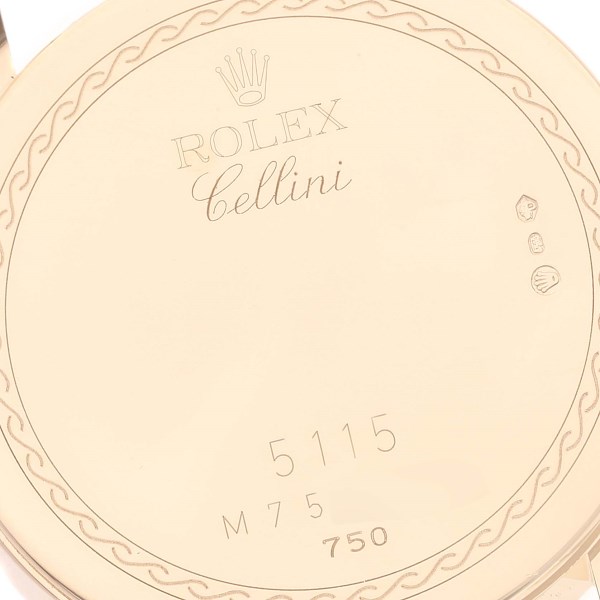 | Case: | 18K yellow gold slim case 32mm in diameter. 5.5mm case thickness. Rolex logo on the crown. |