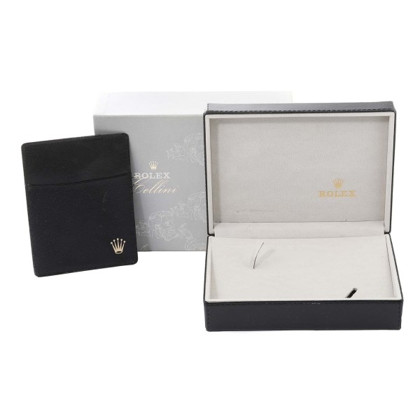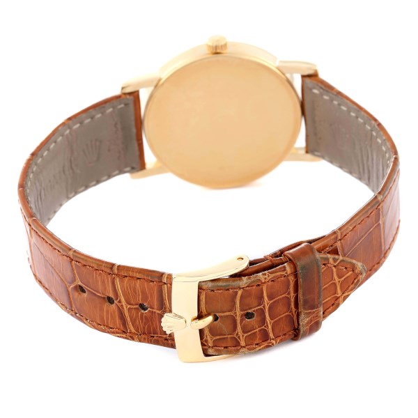 | Case: | 18K yellow gold slim case 32 mm in diameter. Rolex logo on the crown. |