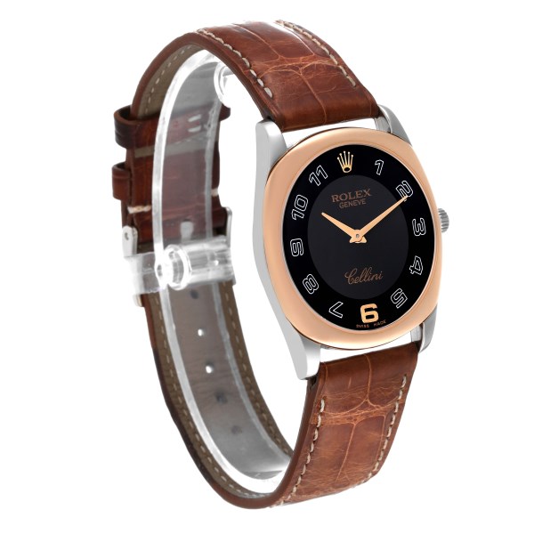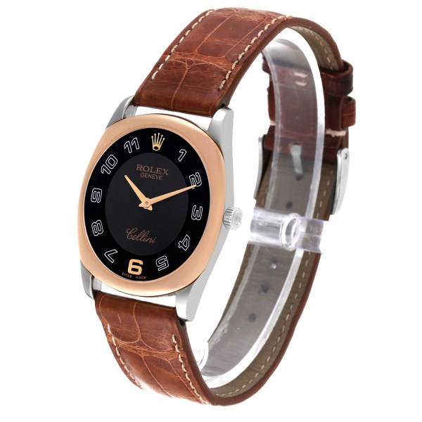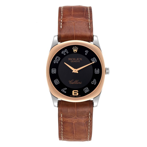 | Model Name: | Rolex Cellini Danaos Black Dial White Gold Rose Gold Brown Strap Mens Watch 4233 |