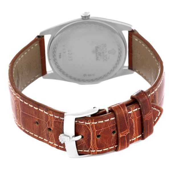| Bracelet: | Brown leather strap with 18K white gold Rolex tang buckle. |