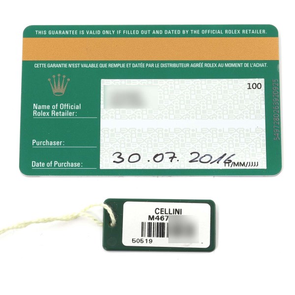 | Box & Papers: | Rolex card, presentation non-Rolex box |