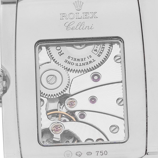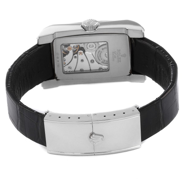 | Case: | 18k white gold case 28 x 47 mm. Rolex logo on the crown. Exhibition sapphire case back. |