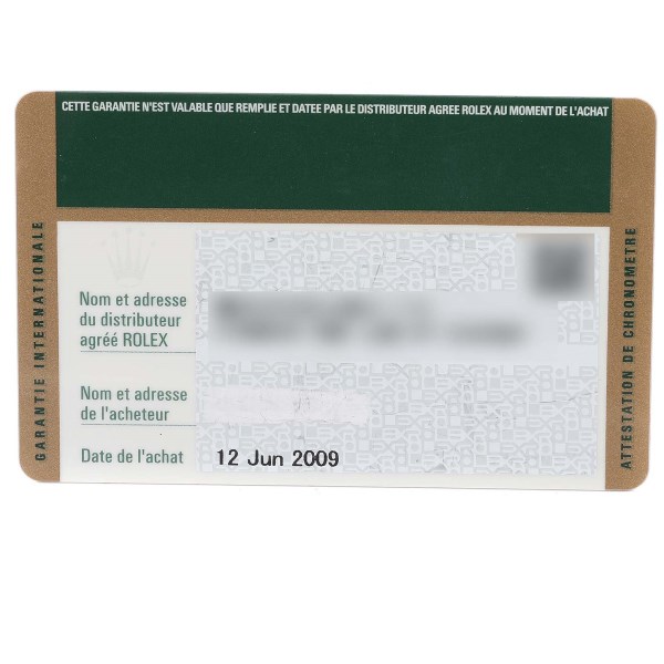 | Box & Papers: | Rolex box and card. |