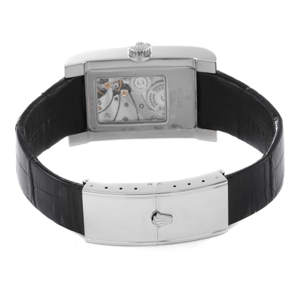 | Bracelet: | Black crocodile strap with 18k white gold deployant clasp. |