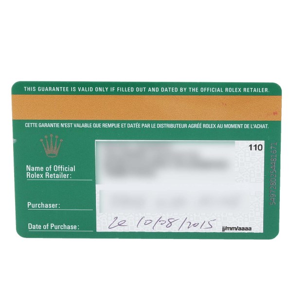 | Box & Papers: | Rolex box and card. |