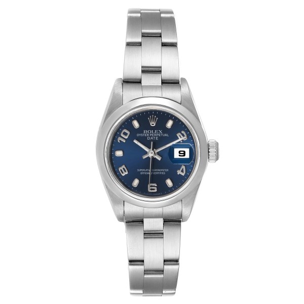 | Model Name: | Rolex Date 26 Blue Dial Domed Bezel Steel Ladies Watch 79160 Box Papers |