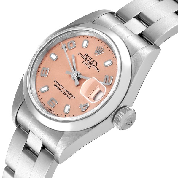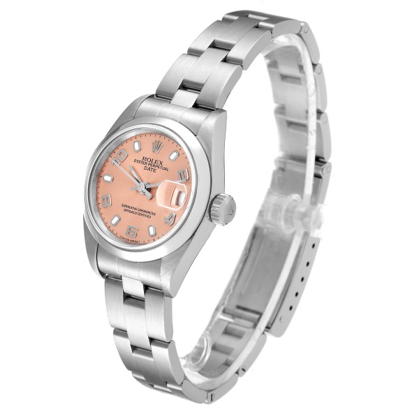 | Model Name: | Rolex Date 26 Salmon Dial Domed Bezel Steel Ladies Watch 79160 |