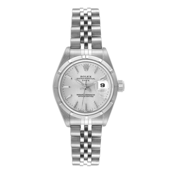 | Model Name: | Rolex Date Silver Tapestry Dial Steel Ladies Watch 69190 Box Papers |