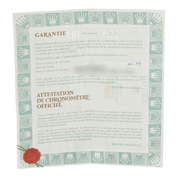 | Box & Papers: | Rolex box and papers. |