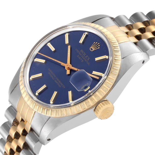 | Model Name: | Rolex Date Steel Yellow Gold Blue Dial Vintage Mens Watch 1505 |