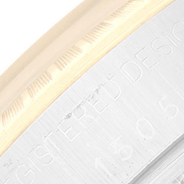 | Case: | Stainless steel and yellow gold round oyster case 34 mm in diameter. Rolex logo on the crown. |