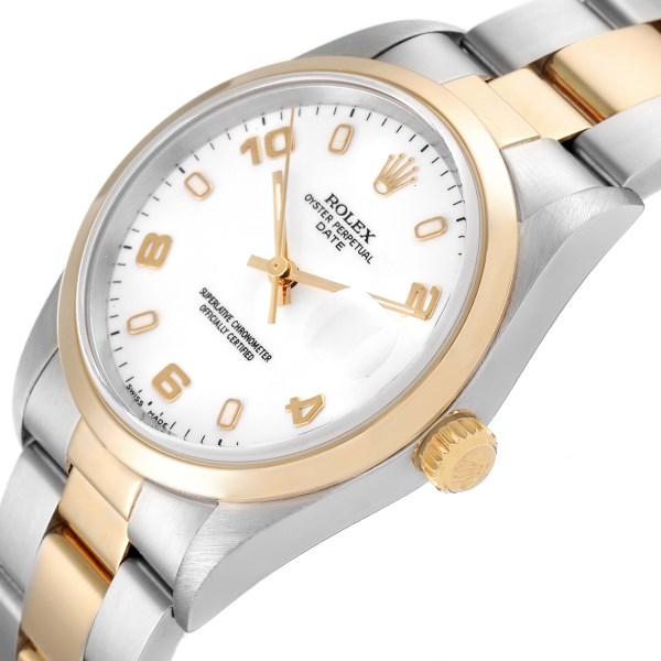 | Model Name: | Rolex Date Steel Yellow Gold White Dial Mens Watch 15203 Box Papers |