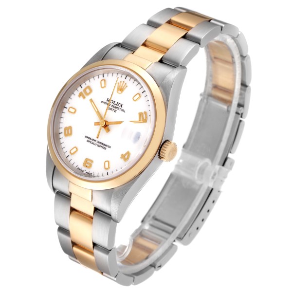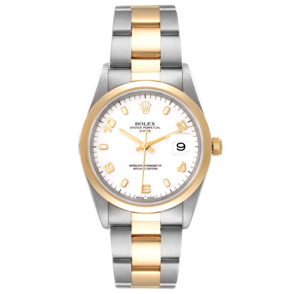 | Model Name: | Rolex Date Steel Yellow Gold White Dial Mens Watch 15203 |