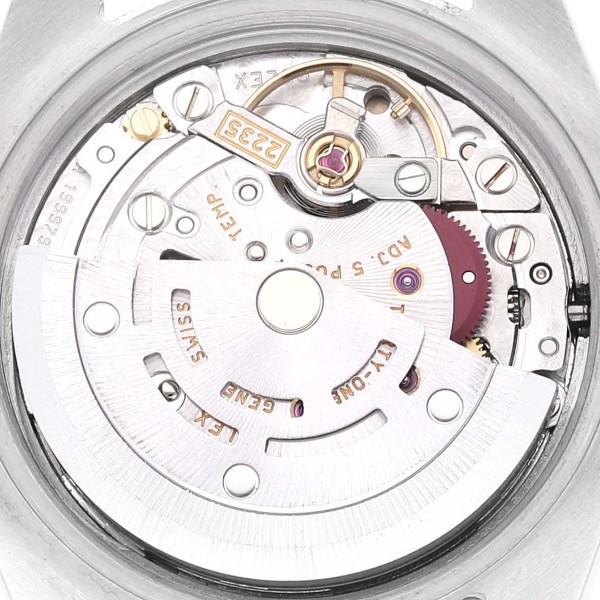 | Dial: | Silver sunbeam dial with raised gold roman numerals. Date calendar at 3 o'clock aperture. |