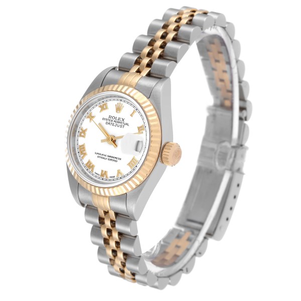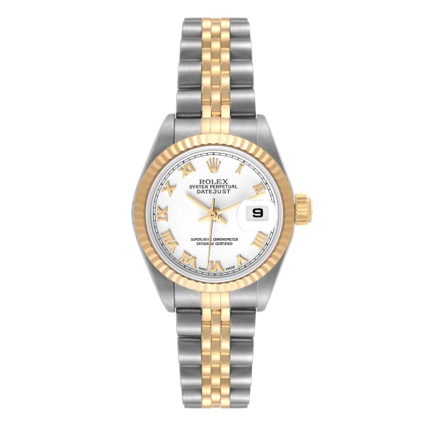 | Model Name: | Rolex Datejust 26 Steel Yellow Gold White Roman Dial Ladies Watch 79173 |