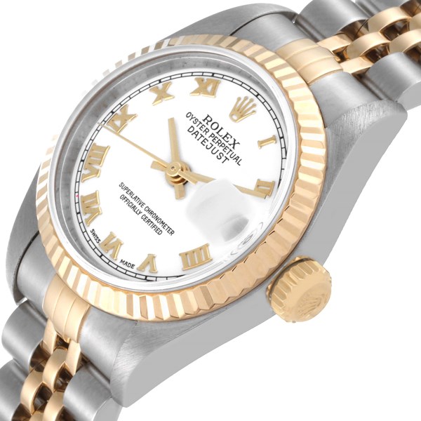 | Model Name: | Rolex Datejust 26 Steel Yellow Gold White Roman Dial Ladies Watch 79173 |