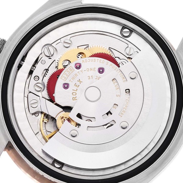 | Case: | Stainless steel oyster case 31.0 mm in diameter. Rolex logo on a rose gold crown. |
