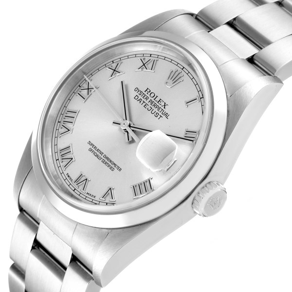 | Model Name: | Rolex Datejust 36 Rhodium Roman Dial Steel Mens Watch 16200 Box Papers |