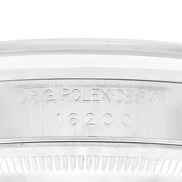 | Model Name: | Rolex Datejust 36 Salmon Roman Dial Smooth Bezel Steel Watch 16200 Box Papers |