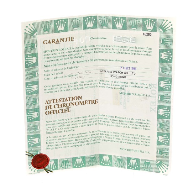 | Box & Papers: | Rolex box and papers. |