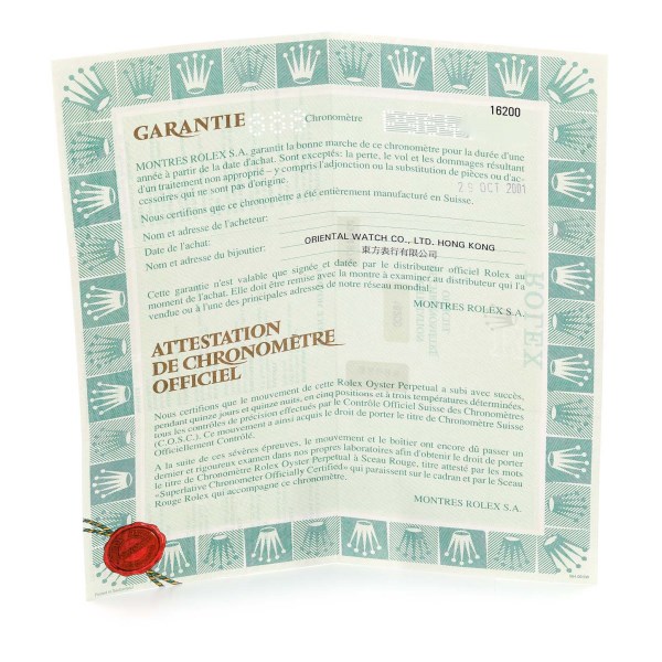 | Movement: | Officially certified chronometer automatic self-winding movement. |
