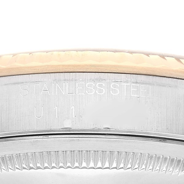 | Case: | Stainless steel case 36 mm in diameter. Rolex logo on a 18K yellow gold crown. |