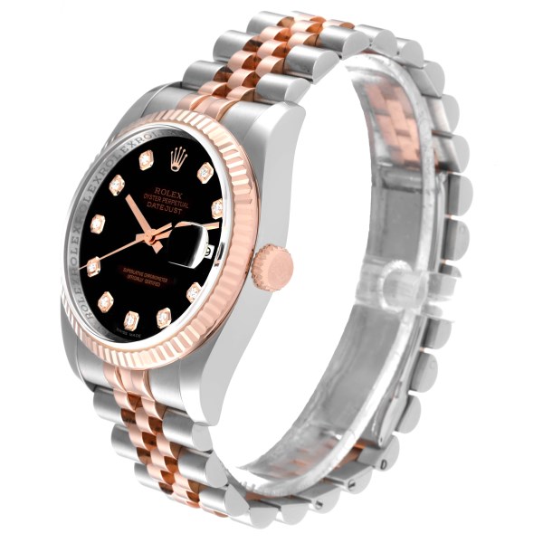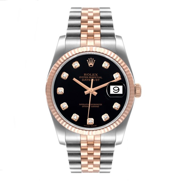 | Model Name: | Rolex Datejust 36 Steel Rose Gold Black Diamond Dial Mens Watch 116231 |
