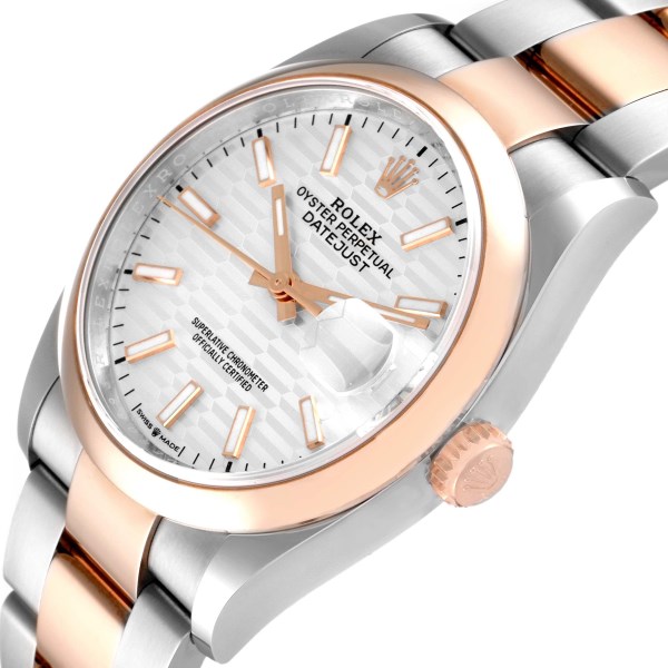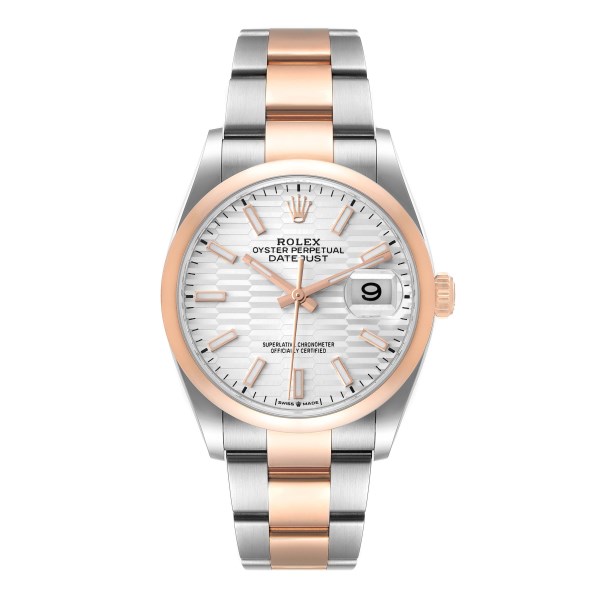 | Model Name: | Rolex Datejust 36 Steel Rose Gold Silver Fluted Dial Watch 126201 Unworn |