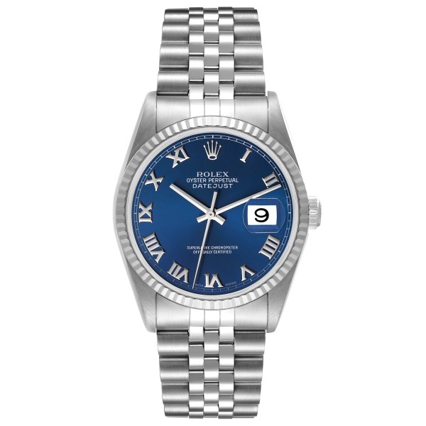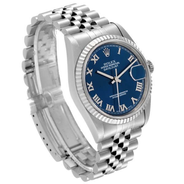 | Model Name: | Rolex Datejust 36 Steel White Gold Fluted Bezel Blue Roman Dial Mens Watch 16234 |