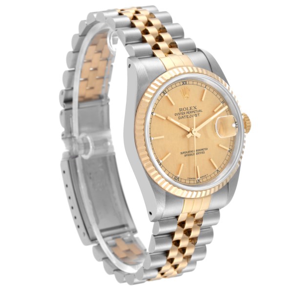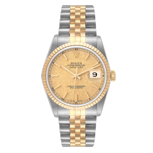 | Model Name: | Rolex Datejust 36 Steel Yellow Gold Linen Dial Mens Watch 16233 |
