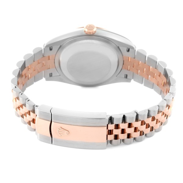 | Case: | Stainless steel case 36.0 mm in diameter. Rolex logo on an 18K Everose gold crown. |