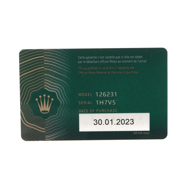 | Box & Papers: | Rolex box and card |