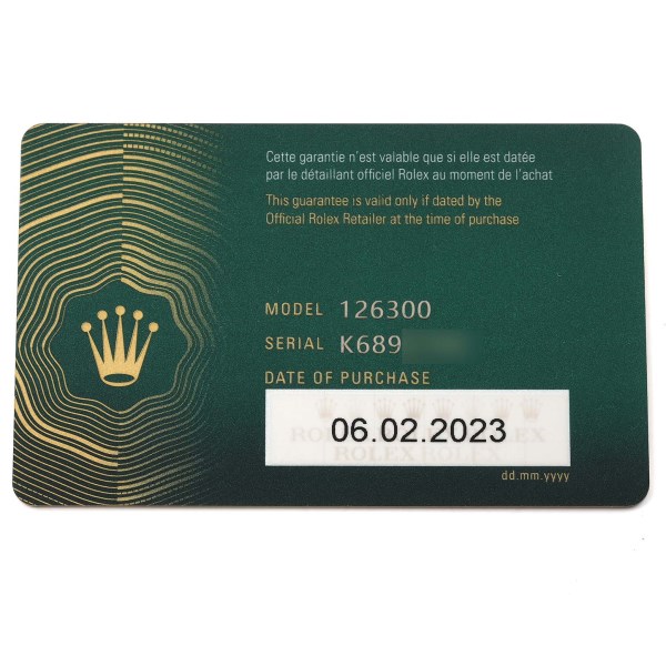 | Box & Papers: | Rolex box and card. |