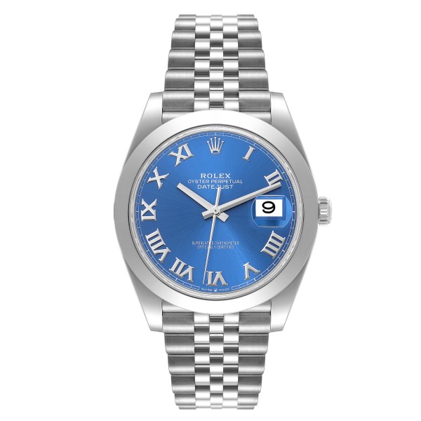 | Model Name: | Rolex Datejust 41 Blue Roman Dial Smooth Bezel Steel Mens Watch 126300 Box Card |