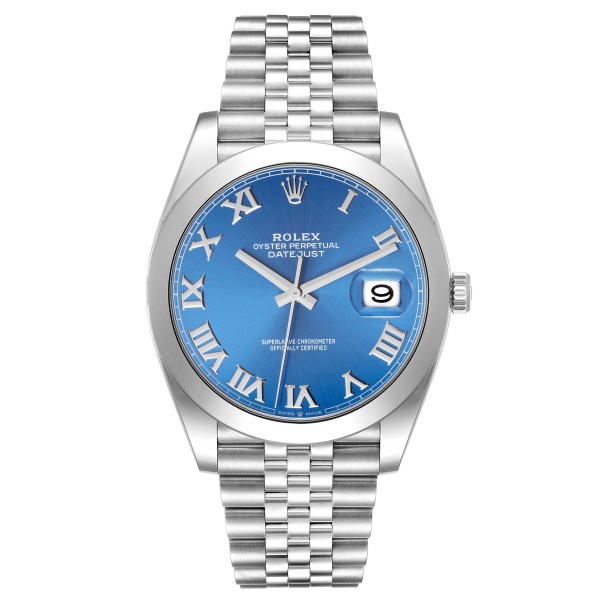 | Model Name: | Rolex Datejust 41 Blue Roman Dial Smooth Bezel Steel Mens Watch 126300 Unworn |