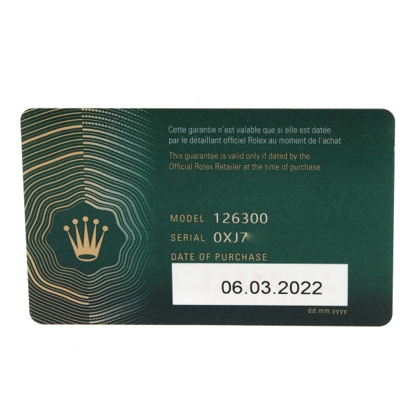 | Box & Papers: | Rolex box and card. |