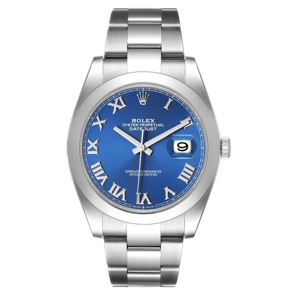 | Model Name: | Rolex Datejust 41 Blue Roman Dial Steel Mens Watch 126300 Box Card |